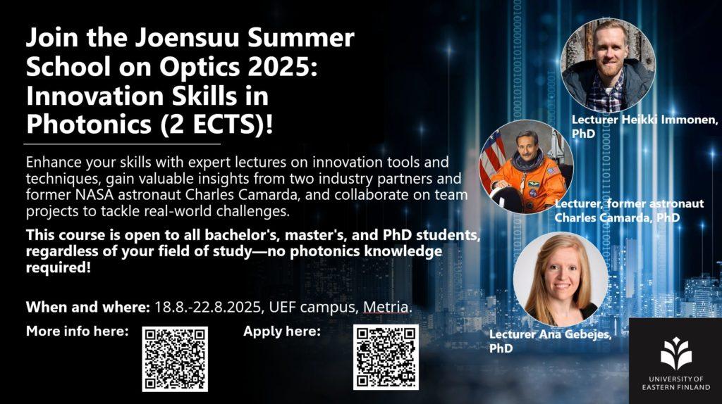 More info: https://www.photonics.fi/event/joensuu-summer-school-on-optics-2025/